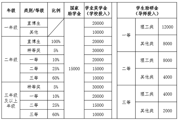 博士研究生学业奖助学金一览表(元/年)