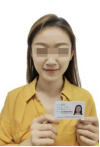 注意:要将持证的手臂和上半身整个拍进照片!要确保身份证上的所有信息可见、完整!
