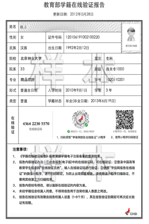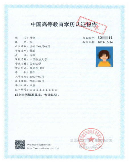 线下学历认证报告(2001年及以前毕业)样例:
