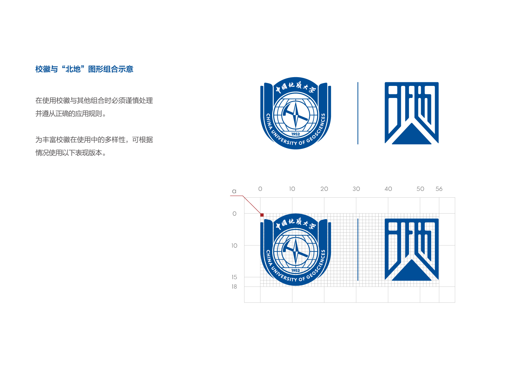 校徽与"北地"图形组合示意