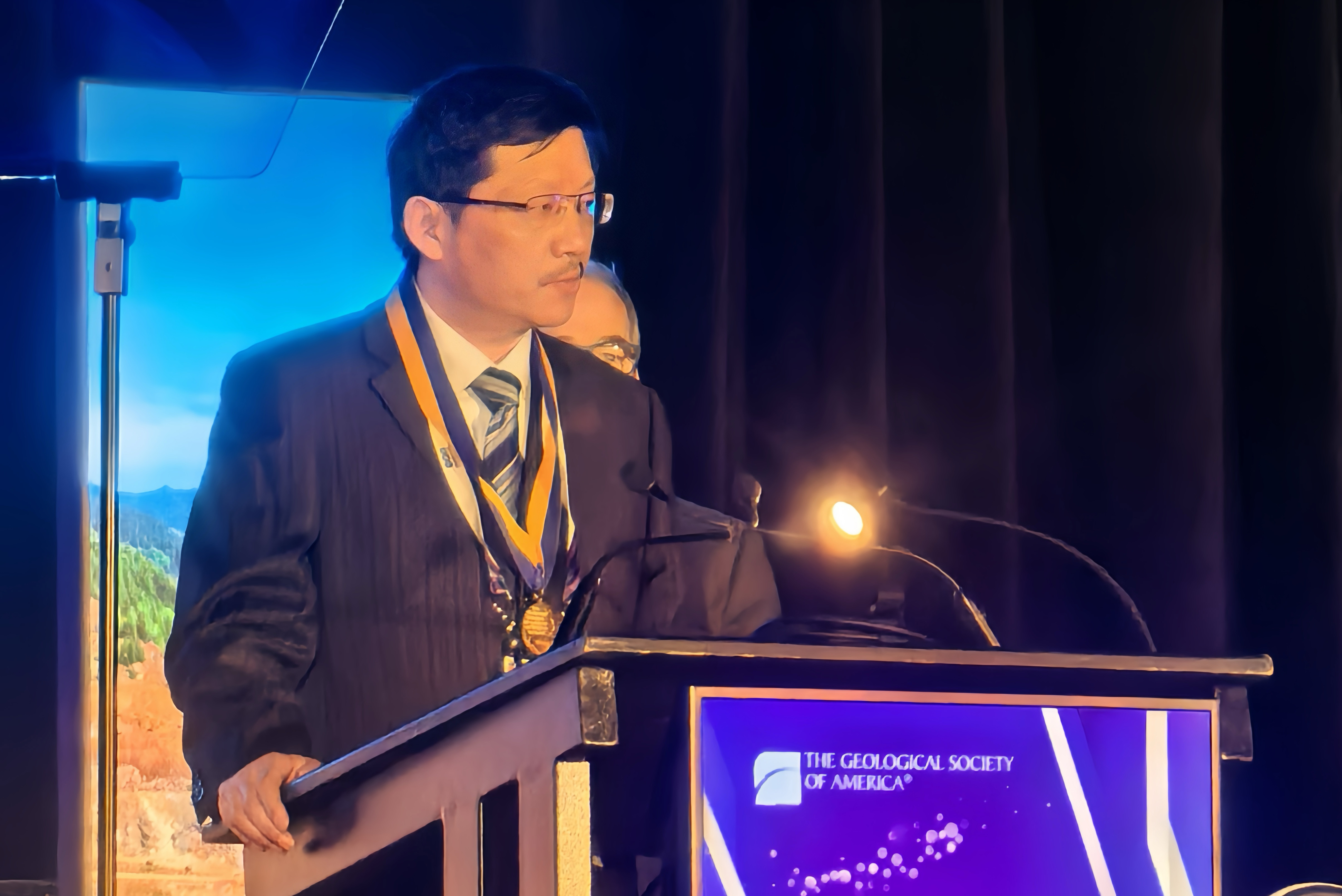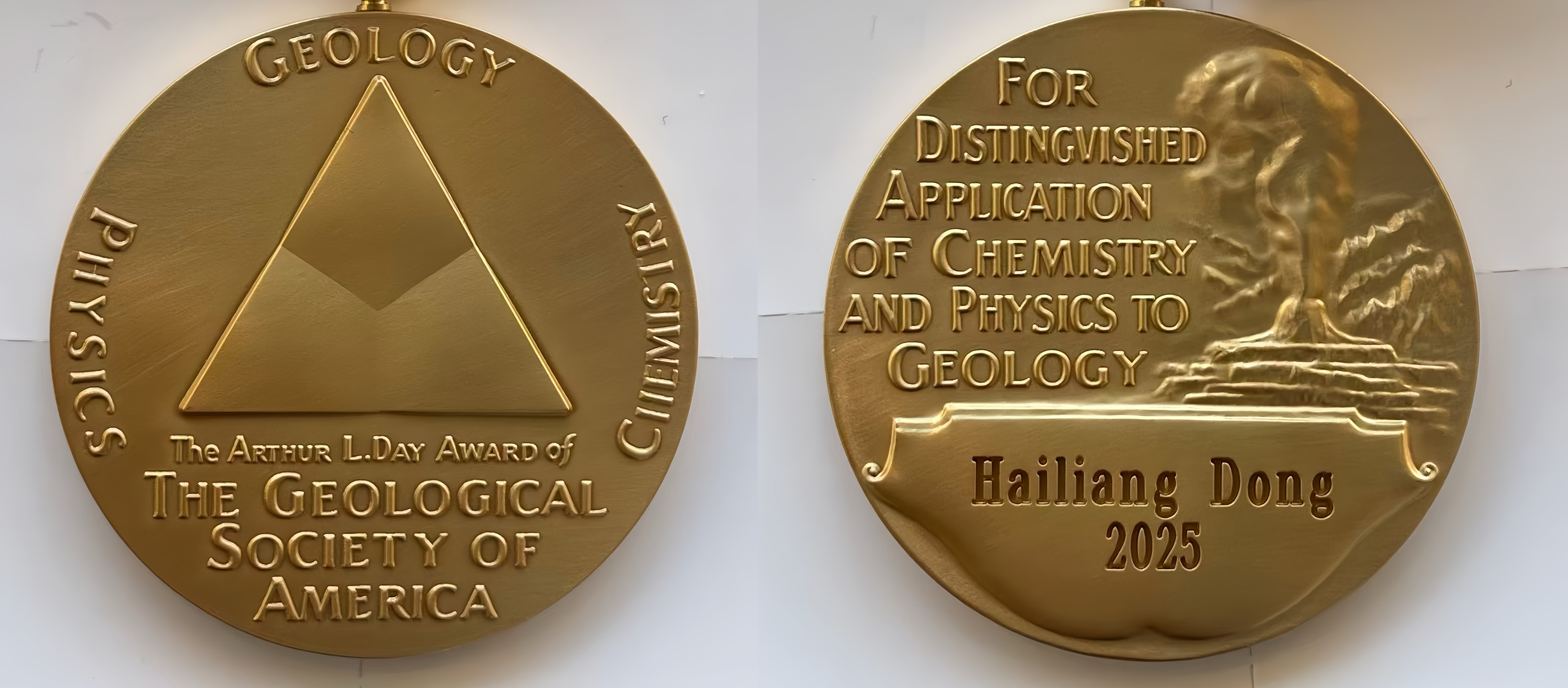 近日,美国地质学会(Geological Society of America, GSA,成立于1888年)将2025年度卓越成就奖(Arthur L. Day Medal)奖章授予我校教授董海良,以表彰其在生物地球化学和地质微生物学领域作出的开创性与颠覆性贡献。董海良是首位获得此项殊荣的亚洲学者。在美国圣安东尼奥举办的美国地质学会年会期间,董海良应邀发表了获奖感言,并作主题报告。