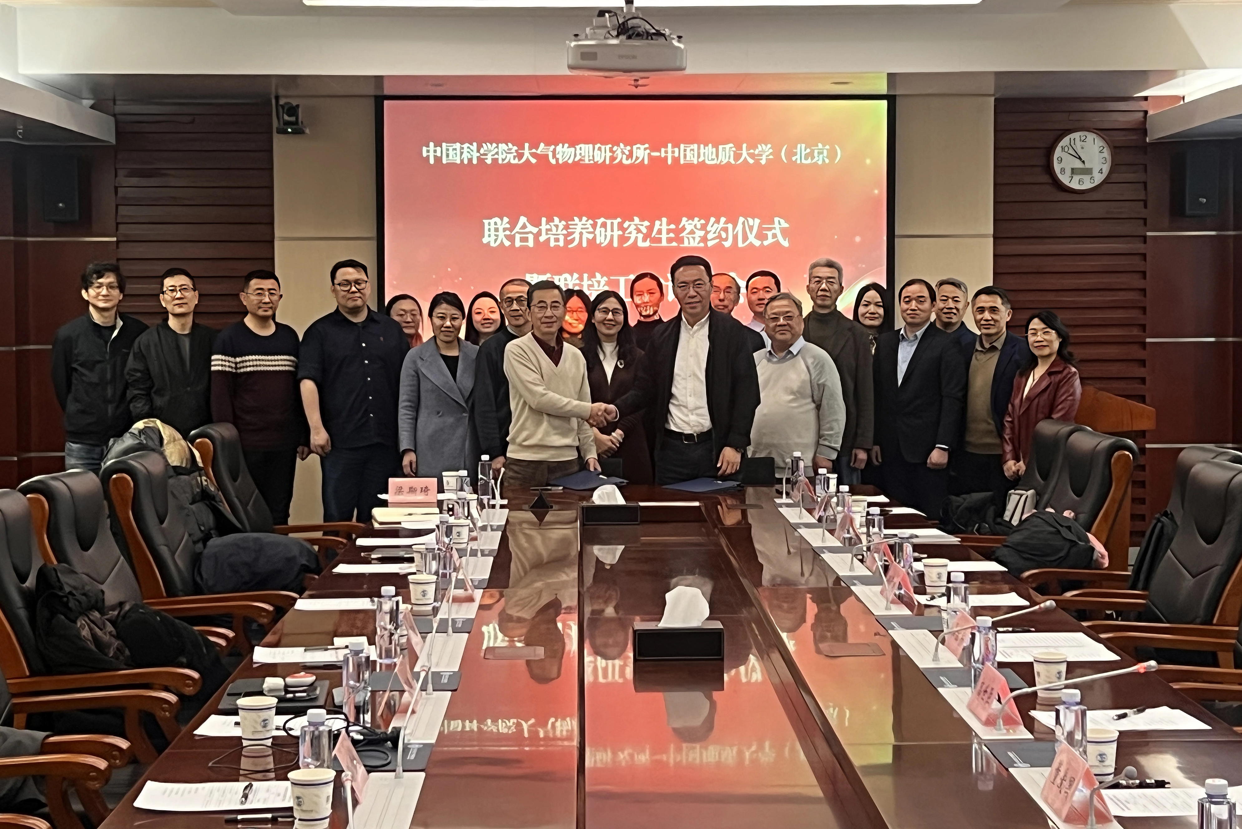 大气所相关部门负责人,我校研究生院、数理学院相关负责人及师生代表参加会议。