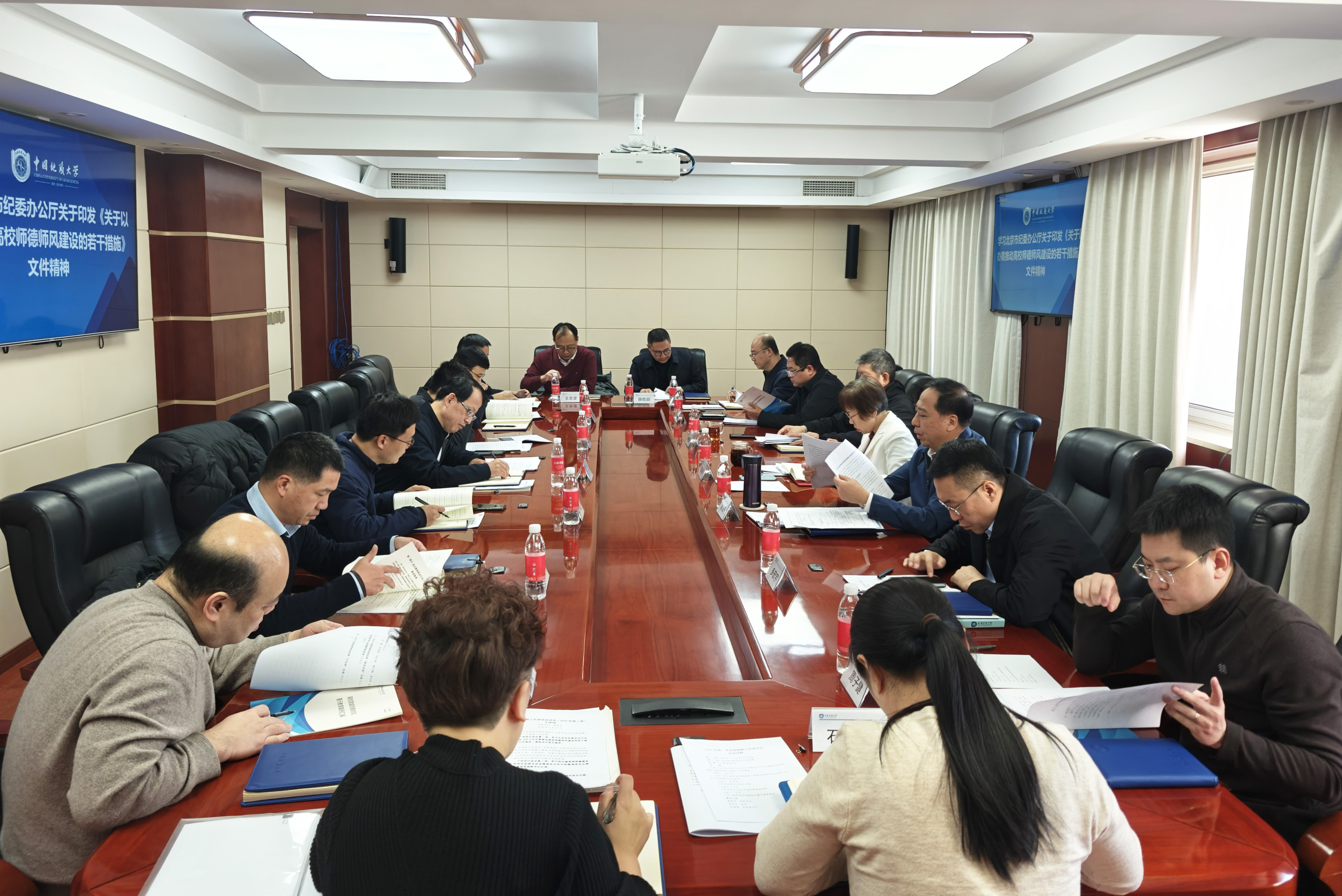 赵志丹领学了北京市纪委办公厅印发的《关于以办案推动高校师德师风建设的若干措施》文件精神。会议强调,要建立健全调查处理师德失范问题的协同机制,加强各单位在信息互通、分析研判、线索处置等方面协同联动,完善各类处分措施的匹配衔接,为建设高水平教师队伍提供坚实保障。